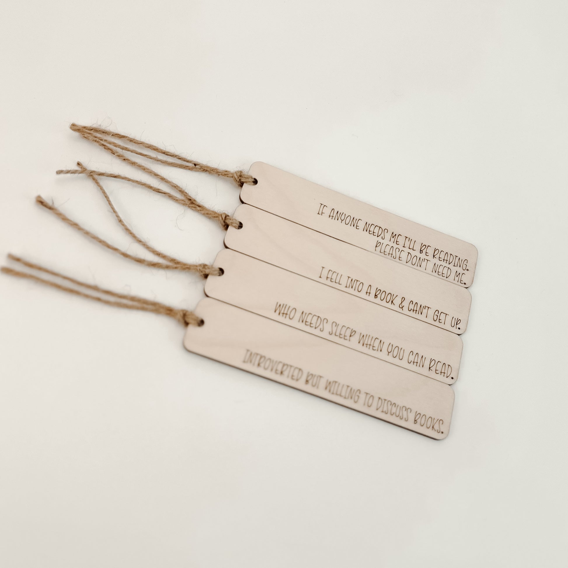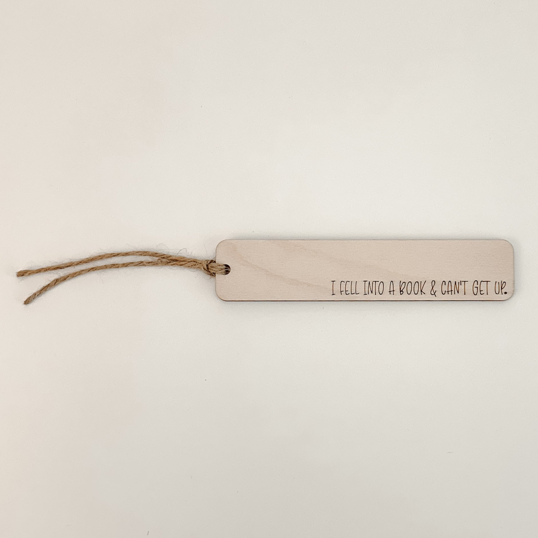 Crafted with precision, this wooden bookmark is made of 1/8” plywood and features a laser-engraved design. Measuring 1” in width and 5” in length, it comes with a twine string attached to one end.