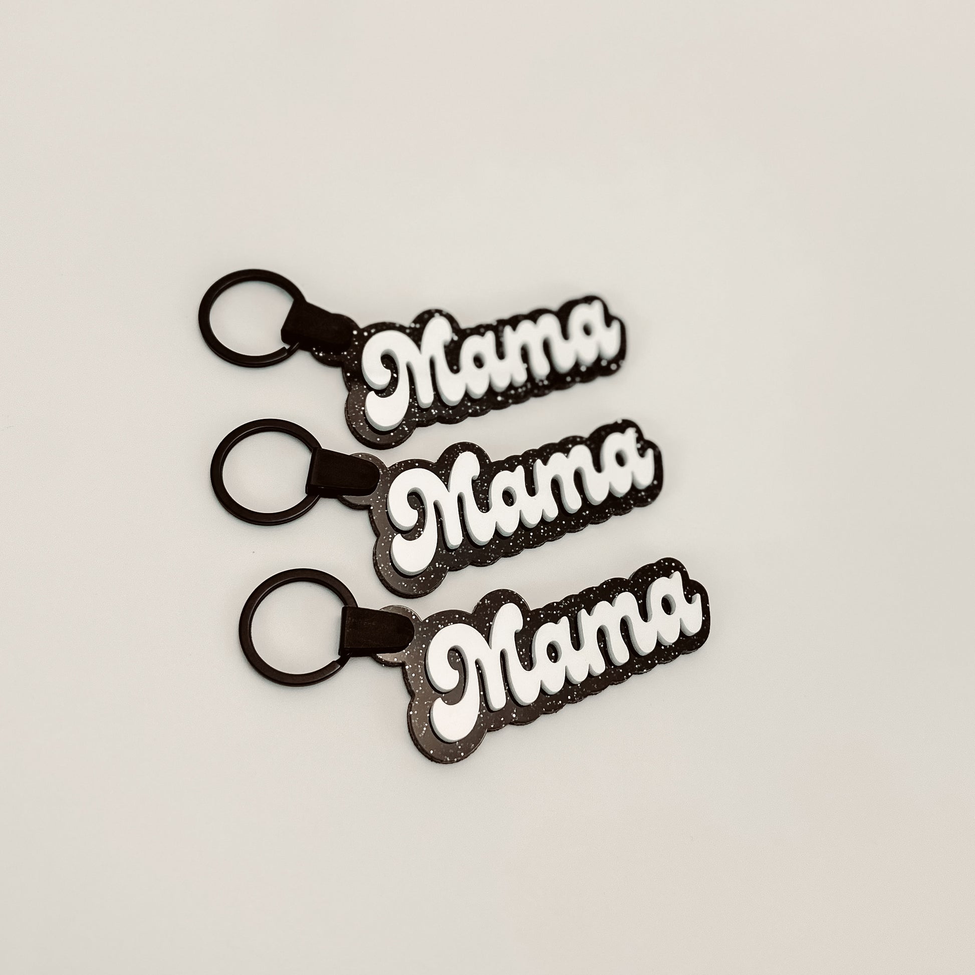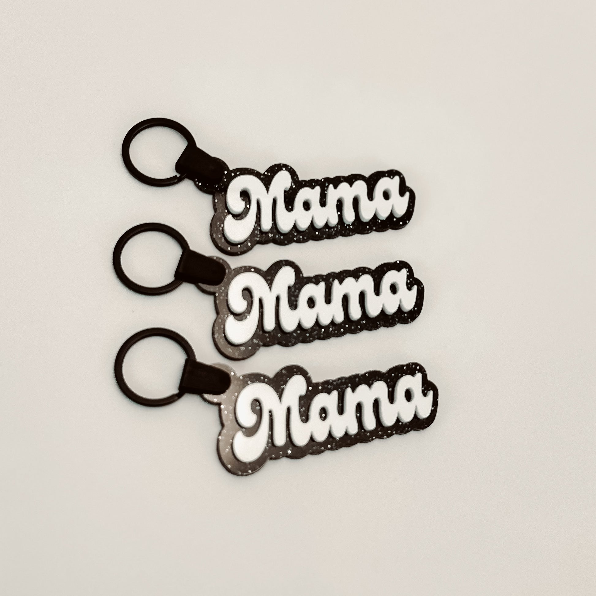 Add some sparkle and style to your keys with this Mama keychain! Great for yourself or to give as a gift.