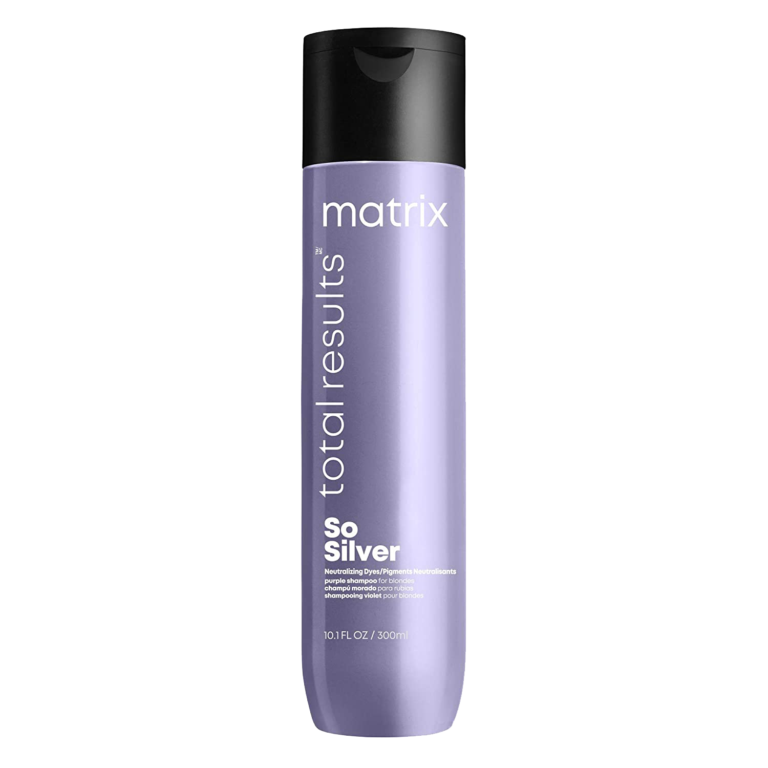 Total Results So Silver is a professional salon clarifying shampoo that neutralizes yellow tones while refreshing your hair with cool tones. Best for blone and grey hair, this shampoo deposits balancing violet pigments to reduce yellow tones.