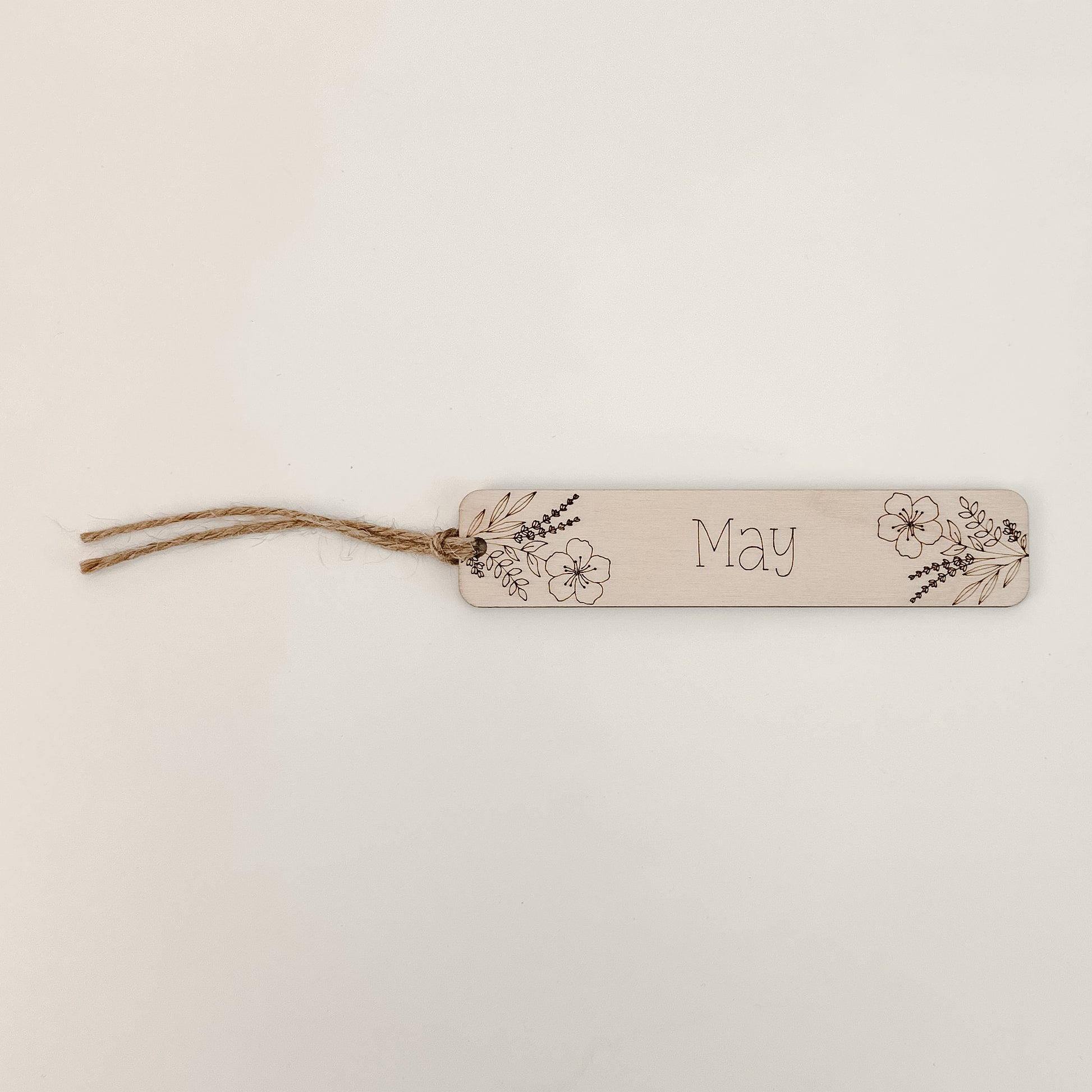Crafted with precision, this wooden bookmark is made of 1/8” plywood and features a laser-engraved design. Measuring 1” in width and 5” in length, it comes with a twine string attached to one end.