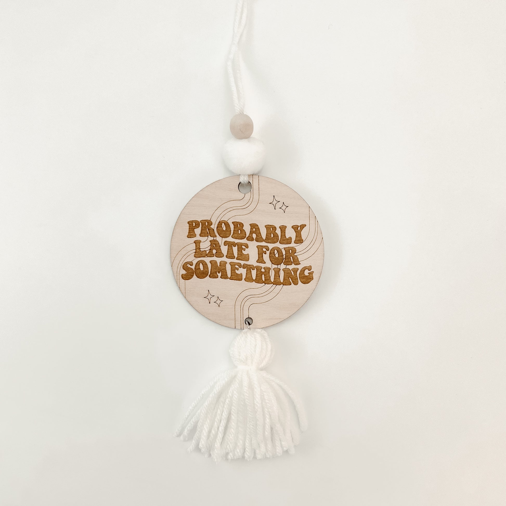 Add a personalized touch to your vehicle with our laser cut and engraved mirror adronment. Featuring a yarn tassel, wool ball, and wood bead. Simply hang it from your rear view mirror and enjoy. Add your favorite essential oils to the wool ball for a natural diffuser effect.